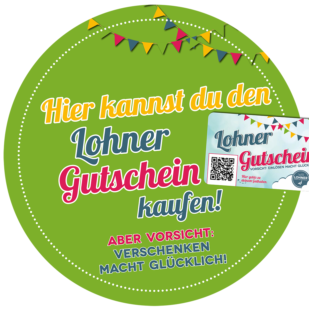 Vorsicht! Verschenken und Einlösen macht glücklich! Der Lohner Gutschein – jetzt digital – bereitet allen viel Freude.